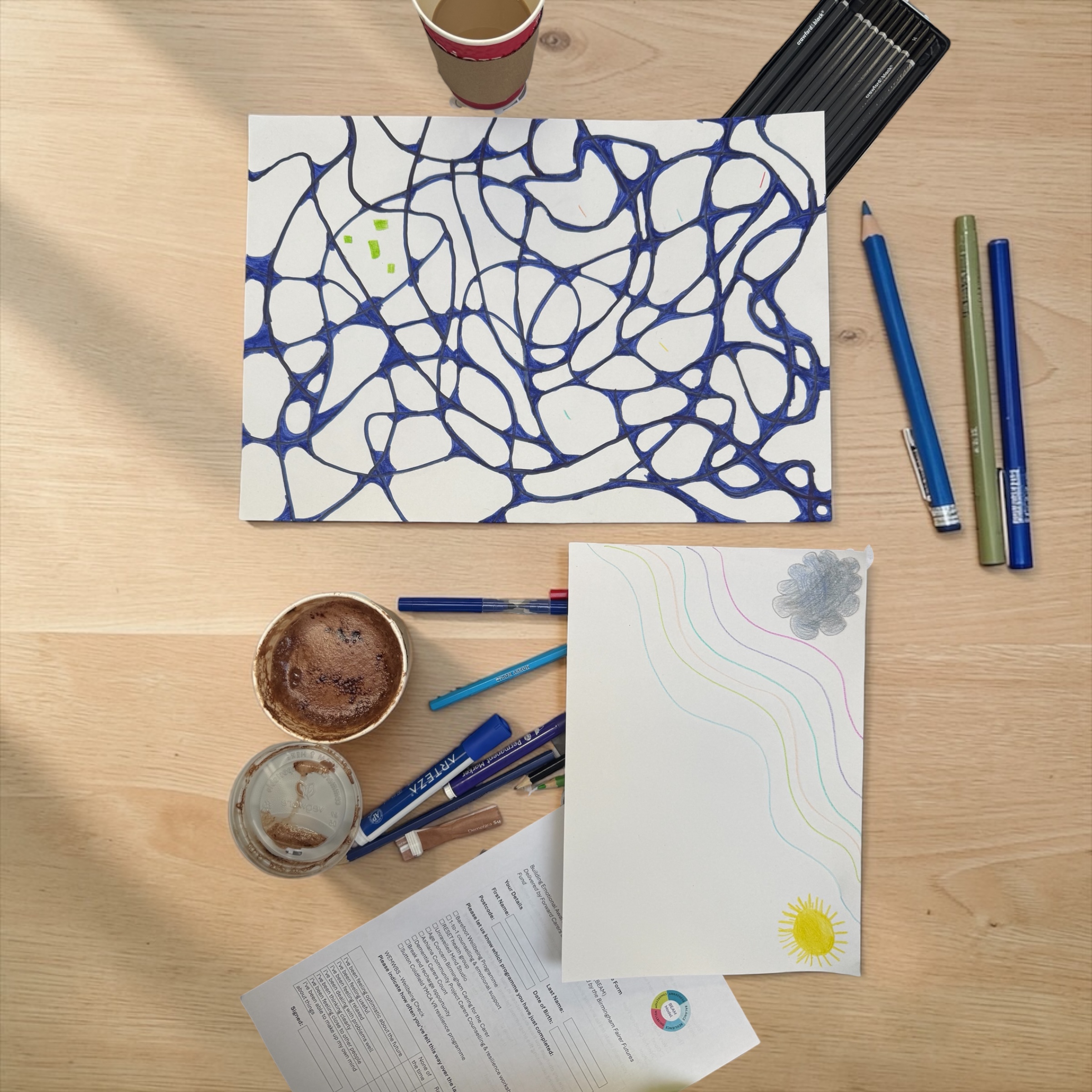 Forward Carers Sessions: Relaxed art sessions offer carers a chance to take time for themselves, slow down, and explore creativity in a supportive environment. Using simple materials and gentle guidance, each session focuses on mindful art activities that encourage calm, reflection, and connection with others. No art experience is needed – just come as you are.